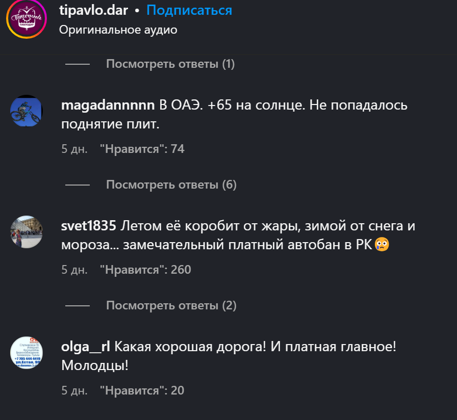 А что там насчёт температурных швов? Не треснет ли от жары снова тот же или любой другой участок? Ответов на эти вопросы «КазАвтоЖол» не дал.