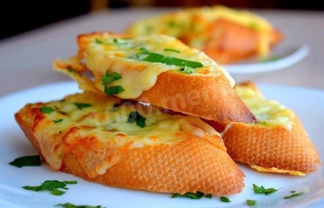 Черствые ломтики хлеба как следует натираете чесноком. Затем поджариваете их слегка, до светлой корочки, на растительном масле. Далее режете ломтиками любой плавленый сырок, их сейчас в магазинах великое множество, раскладываете сыр на поджаренный хлеб, и на несколько минут ставите эти бутерброды в разогретую духовку. Или на минуту – в микроволновку. Важно, чтобы сыр слегка расплавился.