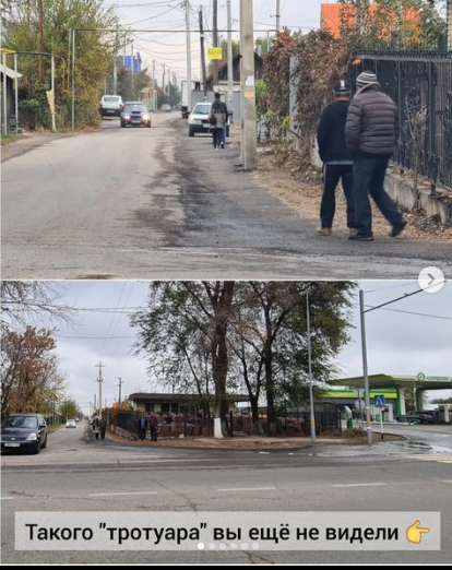 "В микрорайоне Арман появился новый "тротуар". Часть сделана "на отвали", часть выглядит как расширение проезжей части. Как это понимать?" — подписали фотографии в посте.