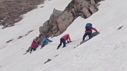 Спасатели помогли ему спуститься с гор и доставили в безопасное место.