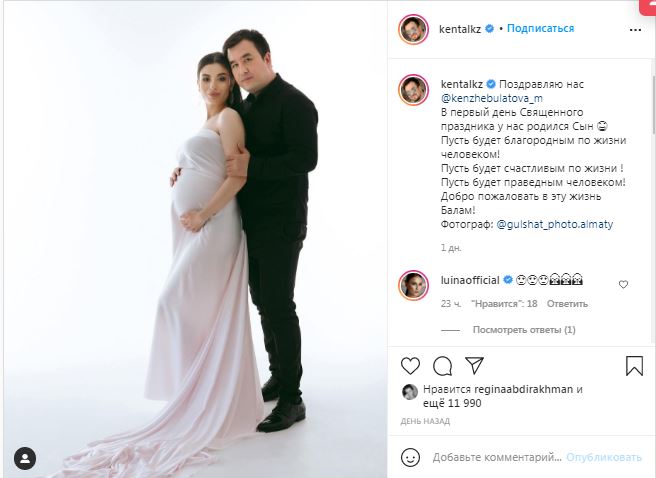 «Ура, родные мои. Добро пожаловать в наш мир, ангелочек», «Поздравляю, брат! Дай Аллах здоровья и счастья ребенку и вам», «Кентал, я очень рада за вас, поздравляю!!!», «Талгат, пусть все сбудется, здоровья!», «Поздравляю вас с рождением сыночка! Мамочке скорейшего восстановления, а малышу расти здоровеньким и крепким мальчиком!!!» — писали фолловеры и друзья.