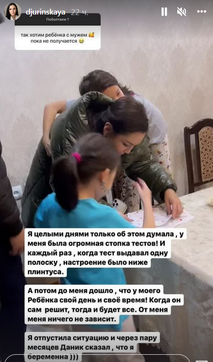А потом до меня дошло, что у моего ребенка свой день и свое время! Когда он сам решит, тогда и будет все. От меня ничего не зависит. Я отпустила ситуацию, и через пару месяцев Даник сказал, что я беременна".