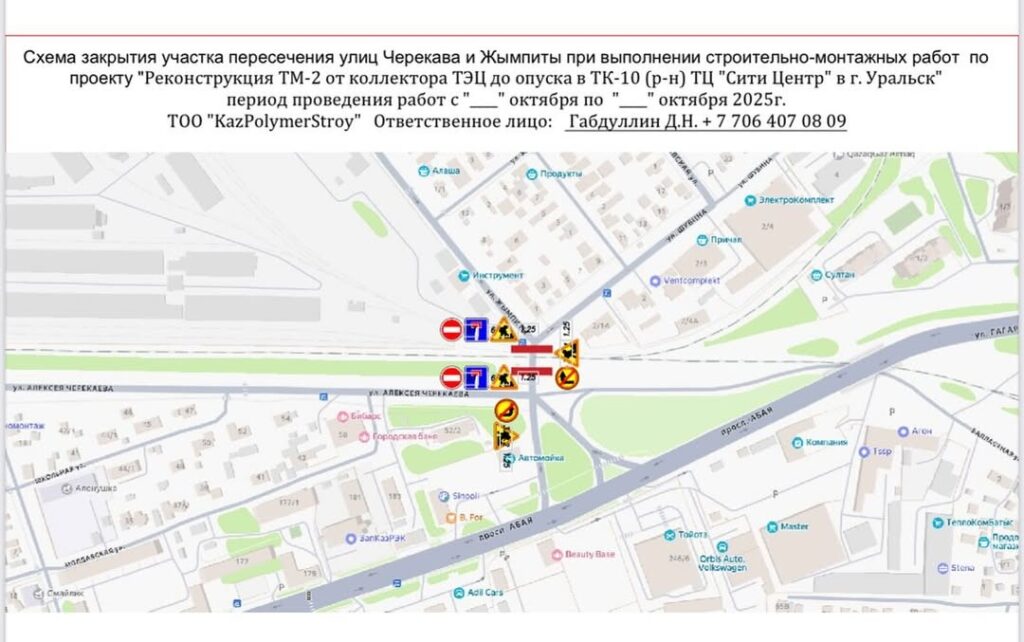 В пресс-службе городского акимата сообщили, что в рамках проекта «Реконструкция ТМ-2 от коллектора ТЭЦ до опуска в ТК-10 (район ТЦ «Сити Центр») планируется проведение работ по монтажу металлических конструкций теплотрассы через улицу Жымпиты на пересечении с улицей Черекаева, передает Caravan.kz.