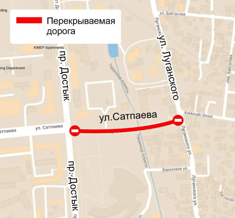 С 08:00 14 августа до 20:00 15 августа движение будет перекрыто на участке от пр. Достык до ул. Луганского.