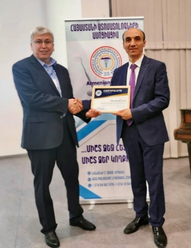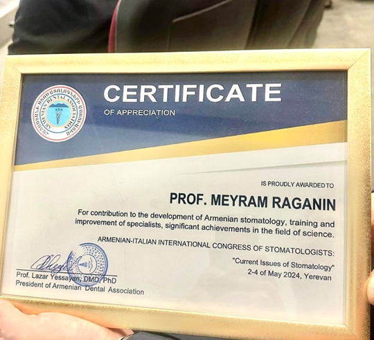 По итогам конгресса, Президент Ассоциации стоматологов Армении поблагодарил доктора Раганина за участие и вручил ему благодарственный сертификат.