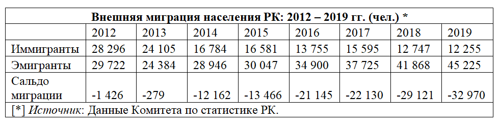 Согласно данным комитета по статистике министерства национальной экономике, ежегодно сальдо внешней миграции по сравнению с количеством приезжих только растет. В 2019 году Казахстан покинули 45 225 человек, в 2018-м — 41 868 человек, а в 2017 году — 37 725 человек.