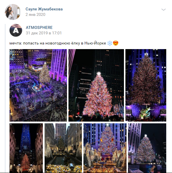 А еще, судя по соцсетям г-жи Жумабековой, ее мечта — побывать в Нью-Йорке в период новогодних праздников.