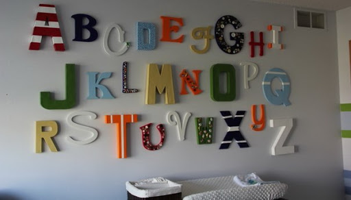 Декор также может стать обучающим элементом. Из пенопласта можно сделать буквы и покрыть их тканью. Объемные буквы могут стать стильным дополнением к детской комнате.