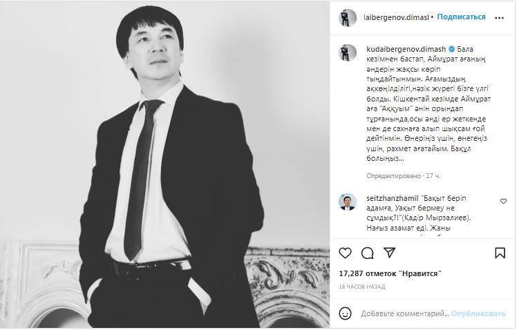К слову, Димаш на своей странице в Instagram также выразил соболезнования по поводу скоропостижного ухода коллеги.