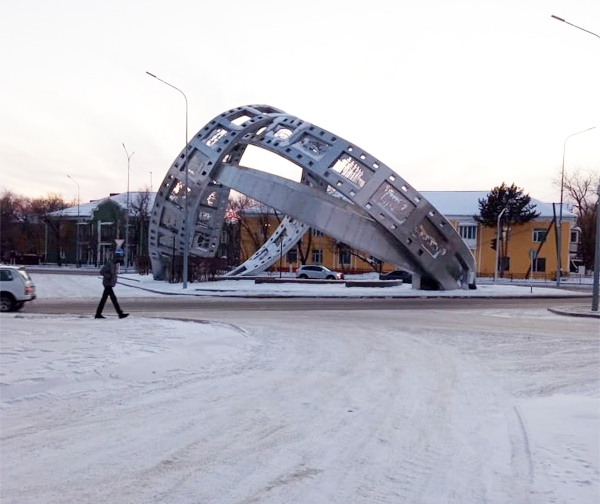 “Кинолента – стилизованное решение на тему истории, застывшей в движущейся киноленте, – сообщал в релизе в последний месяц лета 2020 года акимат Караганды. – Композиция включает в себя закрученный виток ленты, входящей в землю и снова вырывающейся наружу, сохранив в себе этапы жизни города. Композиция объемная, но визуально очень воздушная, располагается на участке земли, островке треугольной формы, благоустройство предусматривает размещение зоны отдыха, озеленение и освещение”. Не стал исполнительный орган скрывать подрядчика – темиртауское ТОО “Механомонтаж-2004”. И стоимость – 187 миллионов тенге.