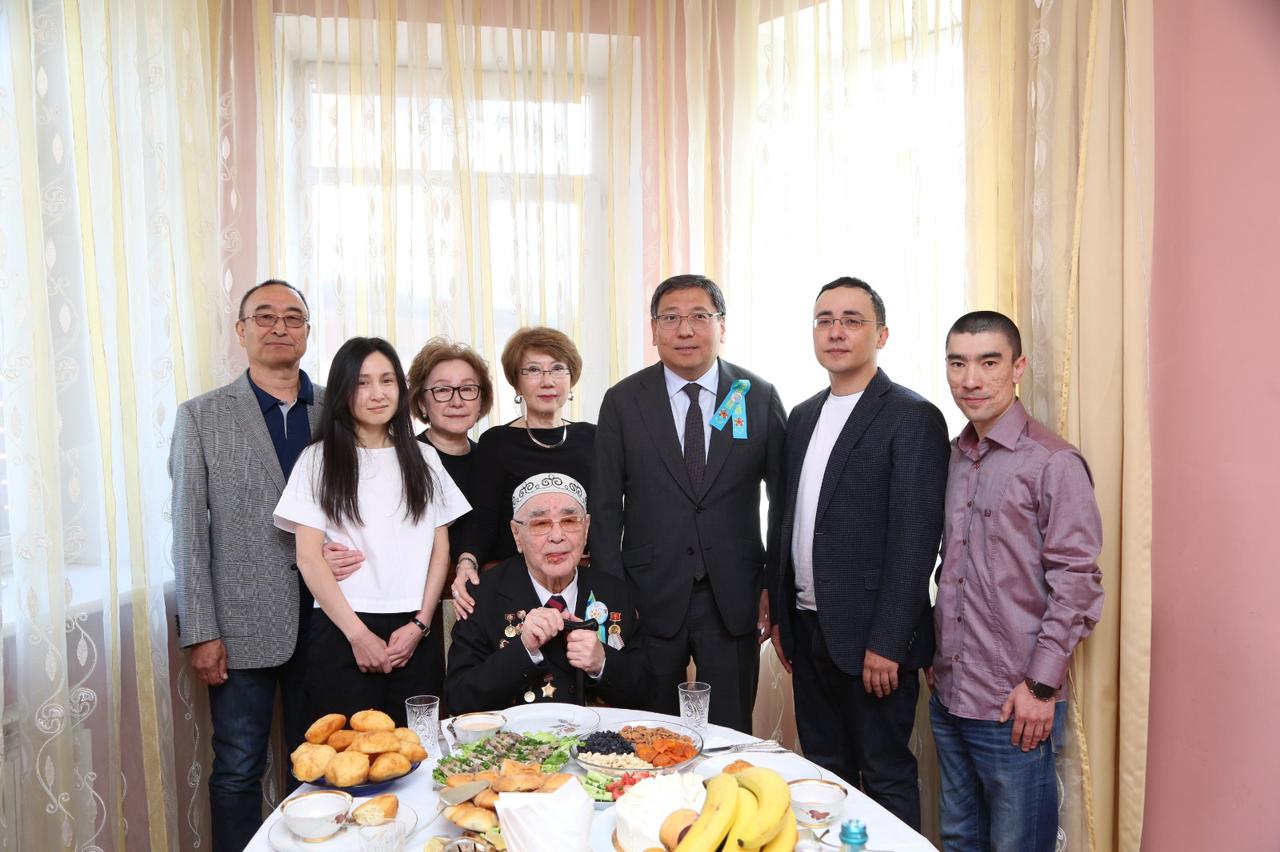 «В самой сложной и жестокой войне в истории человечества именно вы, наши отцы и деды, проявили настоящий героизм и мужество, внесли свой вклад в Великую Победу. Вы свидетель целого столетия. Мы благодарны Вам за мирное небо и спокойное благополучное время, в котором мы живем. Это, в первую очередь, Ваша заслуга», — сказал Ерболат Досаев во время теплой беседы с ветераном и членами его семьи.