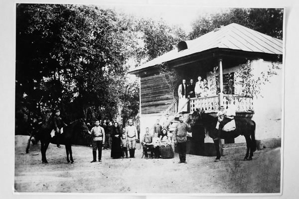 Надежда Матвеевна показывает редкое архивное фото – Егор Редько и его семья на фоне своего дома и фруктового сада в Верном.