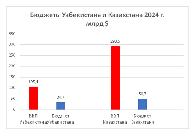 Иначе говоря, узбекский сум минимум в два раза недооценен по отношению к тенге. Это означает, что бюджет Узбекистана в пересчете равен, а скорее и больше бюджета Казахстана.