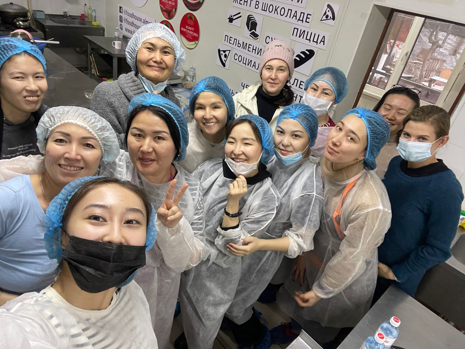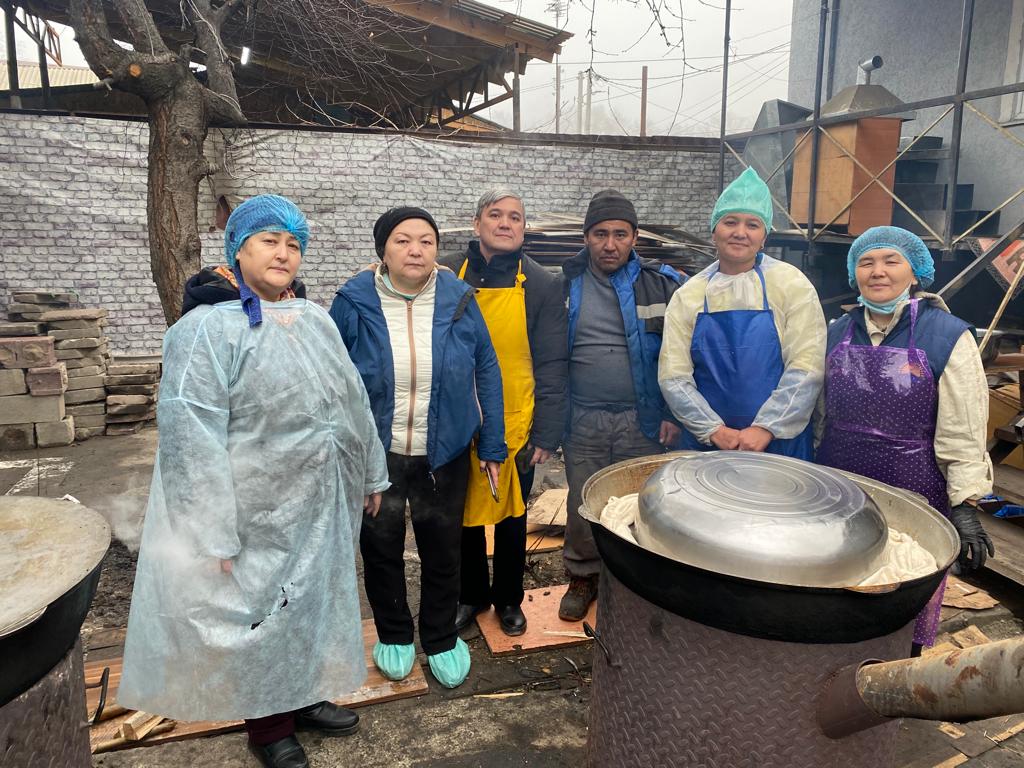 — Наша акция началась спонтанно. После событий 6 января я решила, что надо кормить наших защитников отечества. В первый день нас было только четверо, мы приготовили 820 порций из тех продуктов, что у меня были – макароны и тушенка. Конечно, сама я бы не справилась, мне помогли и продолжают помогать добровольцы и спонсоры. — рассказывает Бибинур Шералиева.