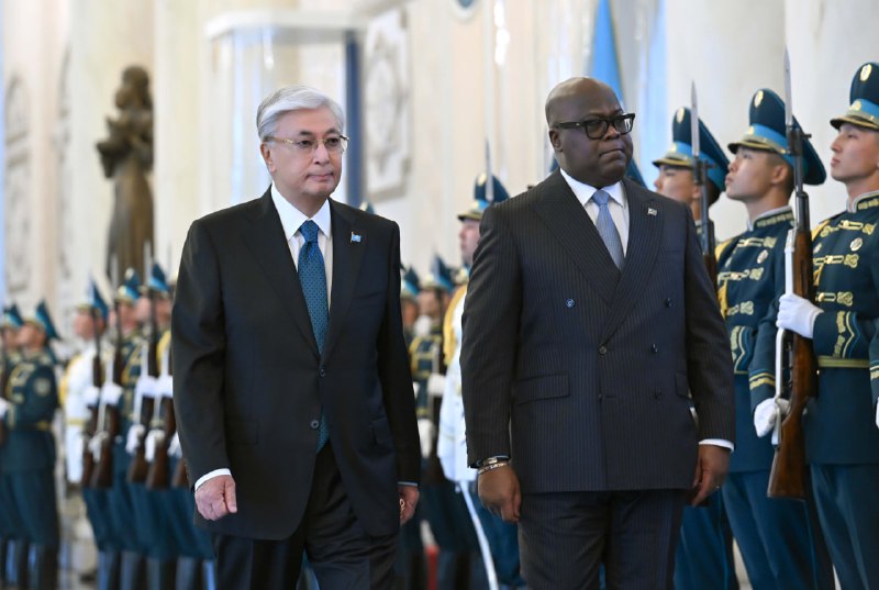 Касым-Жомарт Токаев и Феликс Чисекеди представили друг другу членов делегаций, после чего начальник роты почетного караула отдал приветственный рапорт, прозвучали гимны Казахстана и ДРК.