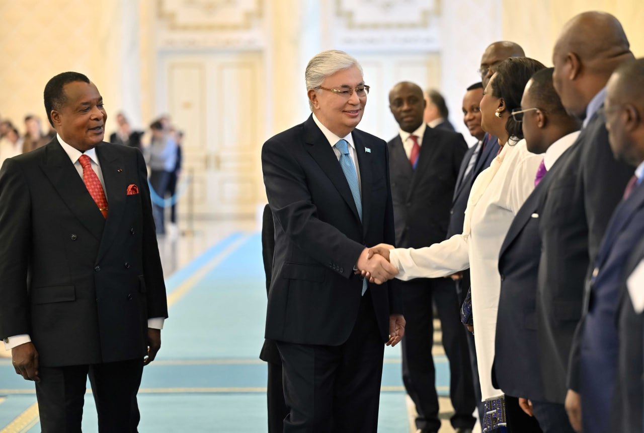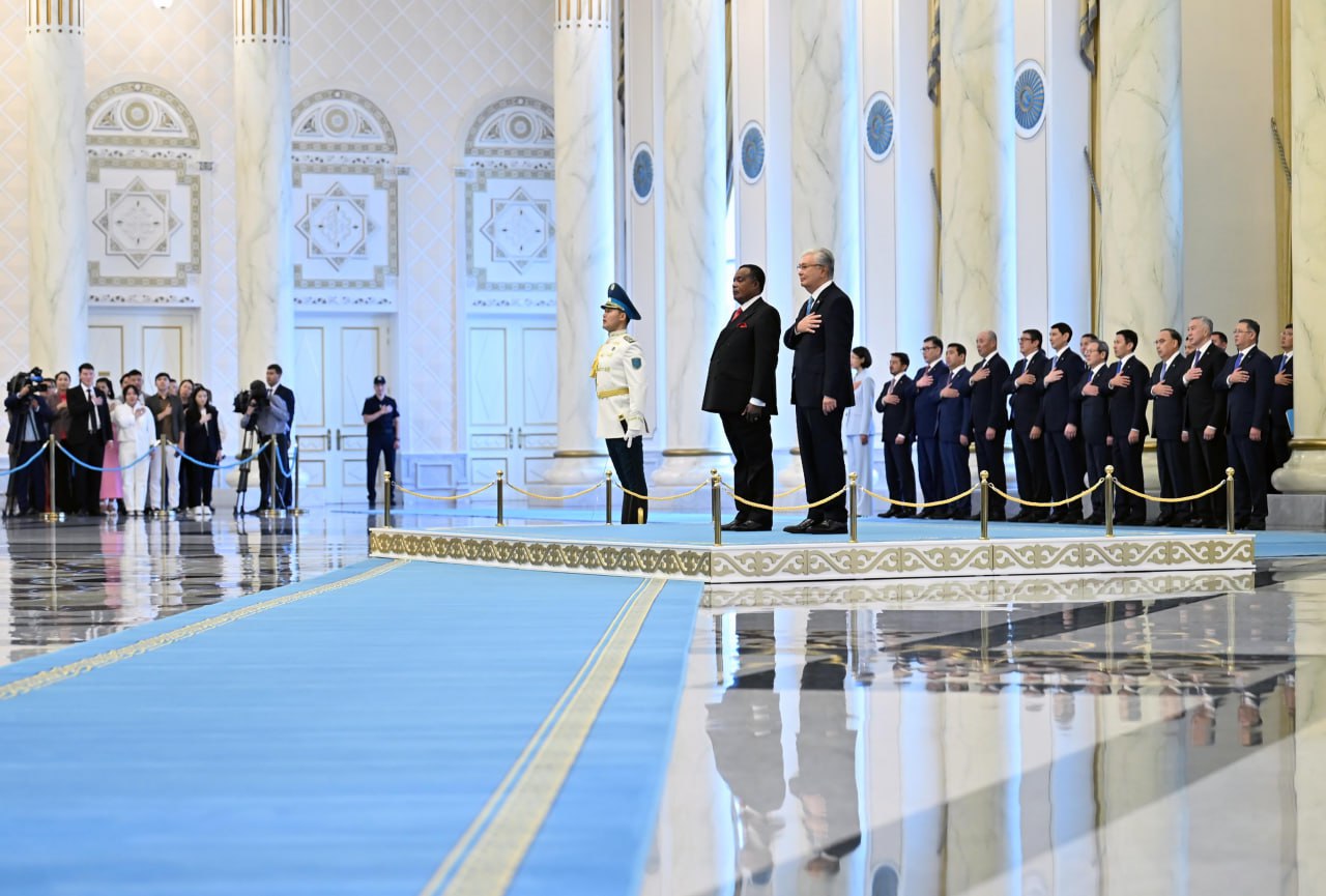 Касым-Жомарт Токаев и Дени Сассу-Нгессо представили друг другу членов официальных делегаций. Начальник роты почетного караула отдал приветственный рапорт, прозвучали государственные гимны двух стран.