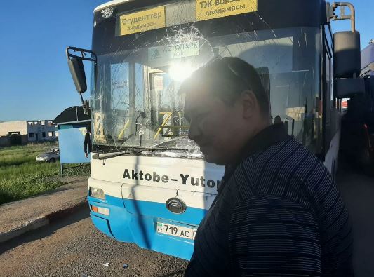 По данным пресс-службы департамента полиции Актюбинской области, водитель грузовика не смог снизить скорость и столкнулся с маршрутным автобусом №21.