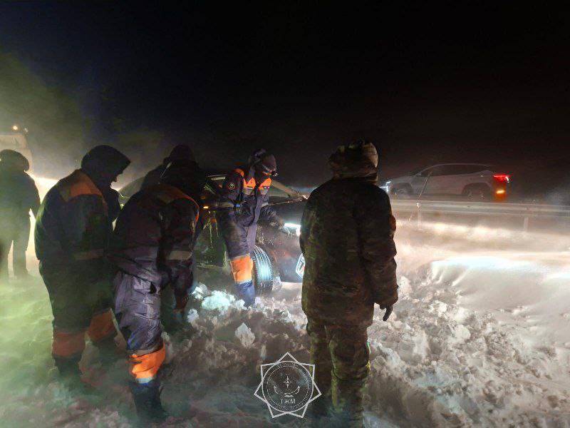 В Илийском районе на трассе Конаев – Курты были спасены 43 человека, включая одного ребёнка, и эвакуированы 20 легковых автомобилей, застрявших в снегу.