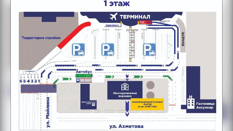 В пресс-службе напомнили, что для выезда с территории аэропорта пассажиры могут воспользоваться всеми шестью пунктами выезда на улицу Майлина. Также открыт дополнительный выезд с территории аэропорта через многоуровневый паркинг на улицу Ахметова.