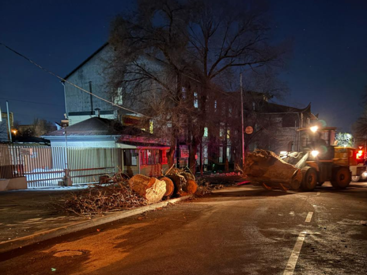 В службе спасения при акимате Алматы рассказали, что на место оперативно прибыли экипажи службы спасения. С помощью бензопилы и спецтехники спасатели распилили аварийное дерево диаметром 100–120 сантиметров и освободили автомобиль Mercedes-Benz.