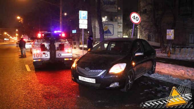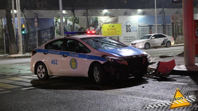 Патрульная машина ехала по Сейфуллина на юг и на повороте на улицу Шевченко столкнулась с Toyota Yaris. В свою очередь, Yaris ехал по улице Шевченко в западном направлении и проезжал на зеленый свет. После столкновения девушку, сидевшую за рулем Toyota, забрали в БСМП на осмотр, после чего вернули на место ДТП.