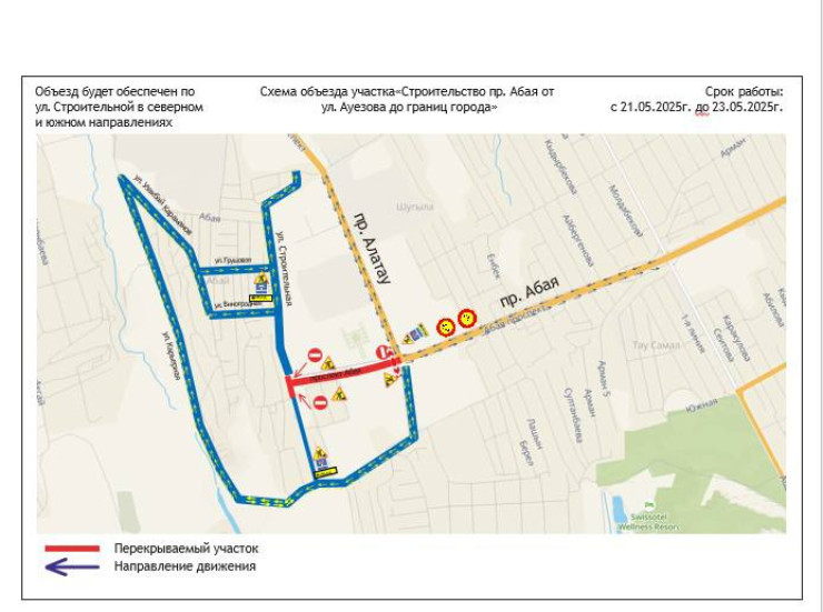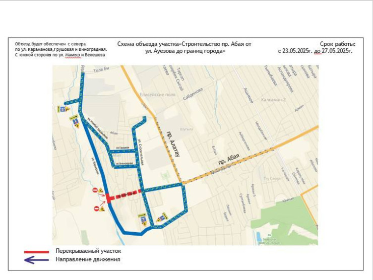 Объезд будет организован по улице Алатау в обоих направлениях.