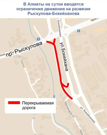 Ограничения вводятся в связи с проведением среднего ремонта участков транспортной развязки, передает пресс-служба акимата города Алматы, пишет Caravan.kz