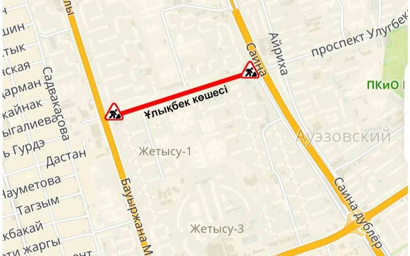 С 08:00 25 июля до 06:00 26 июля движение будет перекрыто на участке от улицы Момышулы до улицы Саина, передает Caravan.kz.