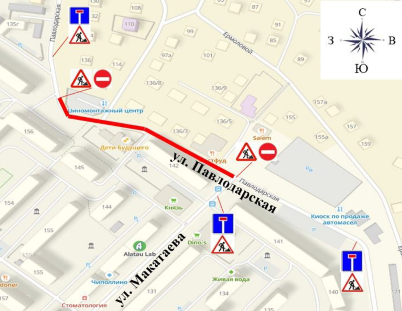 С 23:00 8 августа до 12:00 19 августа движение ограничат на участке от дома №136 до улицы Макатаева.