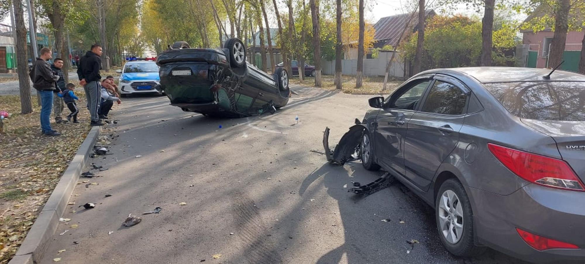 ДТП с перевертышем произошло в Алатауском районе в микрорайоне "Шанырак-2" на пересечении Кутегина и Жанкожи-батыра.