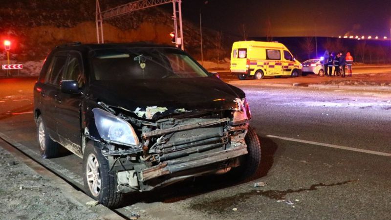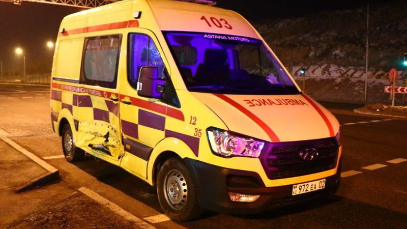 Автомобиль Honda Pilot двигался по Момышулы в северном направлении. Карета скорой помощи ехала по экстренному вызову, водитель совершал левый поворот вдоль БАКА. Honda не пропустил мчащуюся "неотложку" и протаранил бок скорой на полном ходу. От мощного удара скорую отбросило в сторону и опрокинуло на бок.