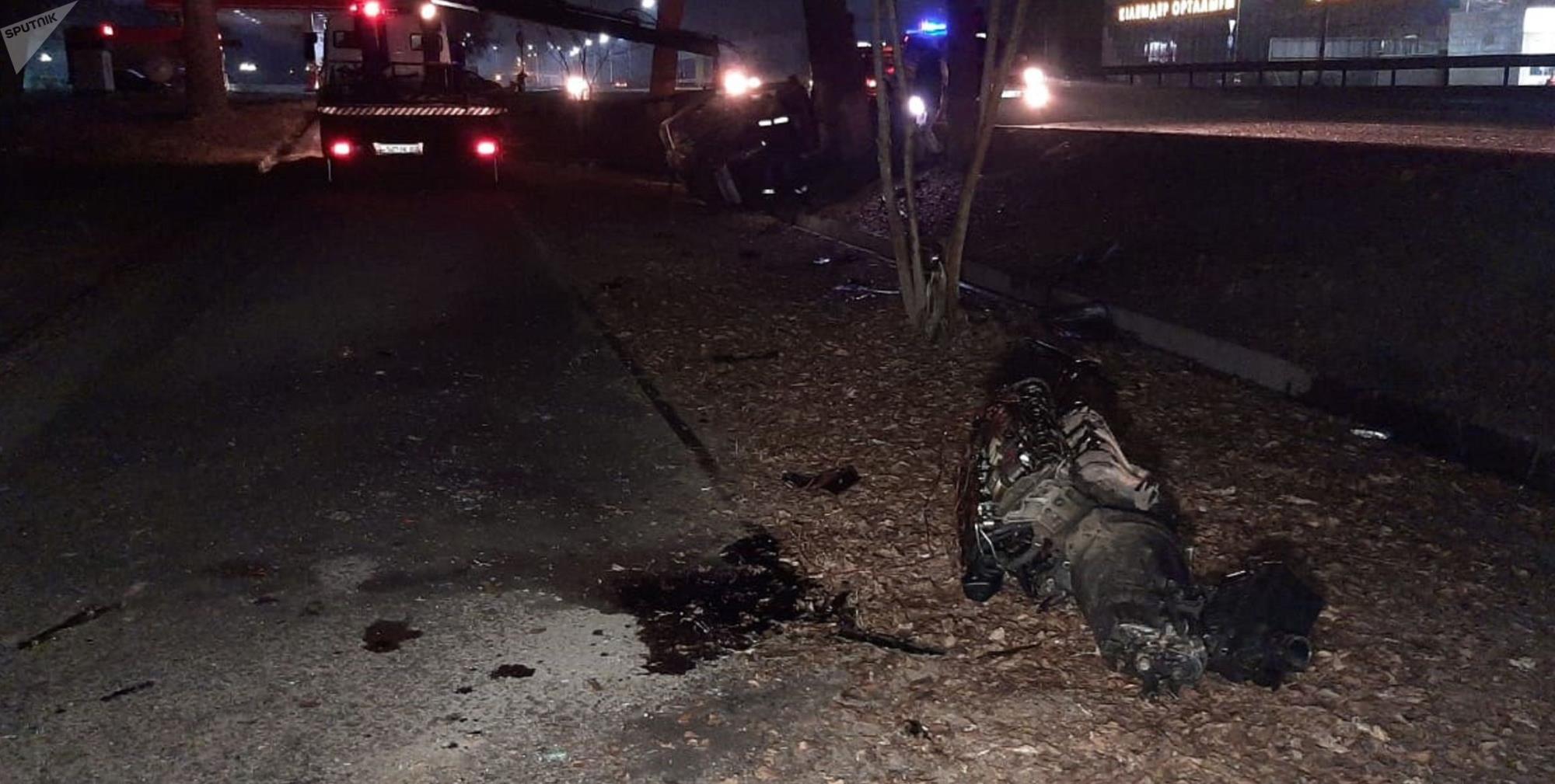 По словам очевидцев, автомашина BMW 5-й серии ехала по проспекту Райымбека на большой скорости. Не доезжая до улицы Яссауи, по невыясненным причинам водитель не справился с рулевым управлением. Машину занесло, она залетела на бордюр, врезалась в два дерева, после чего опрокинулась в арык.