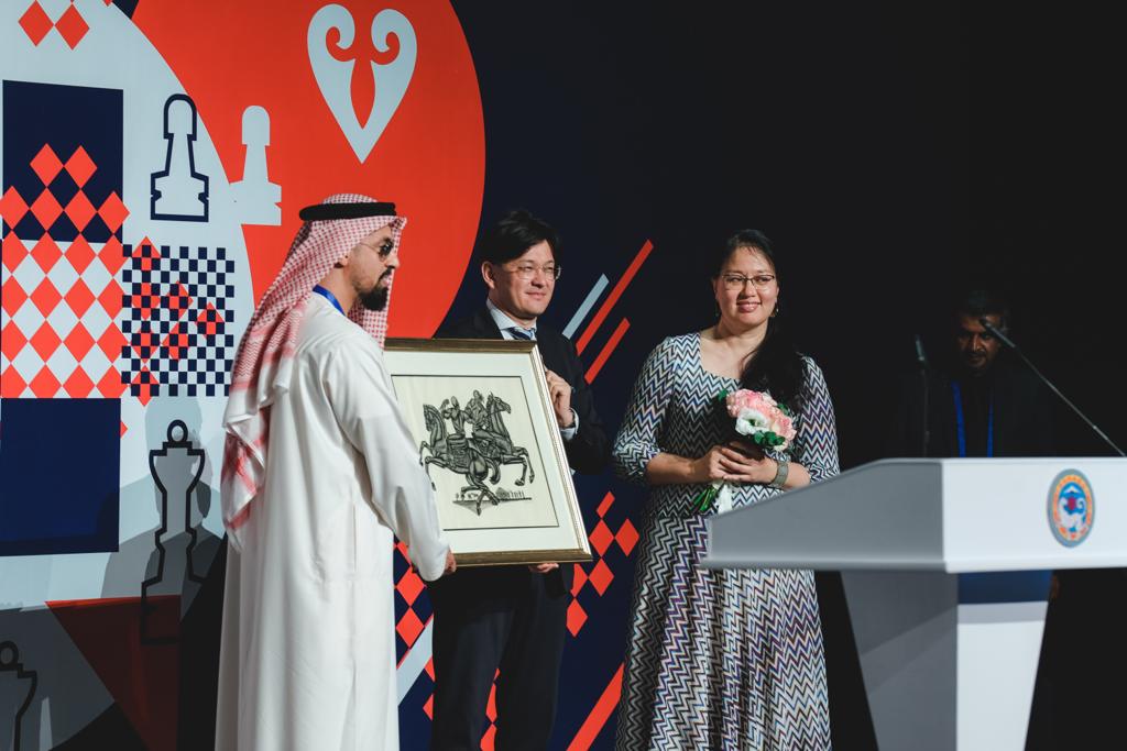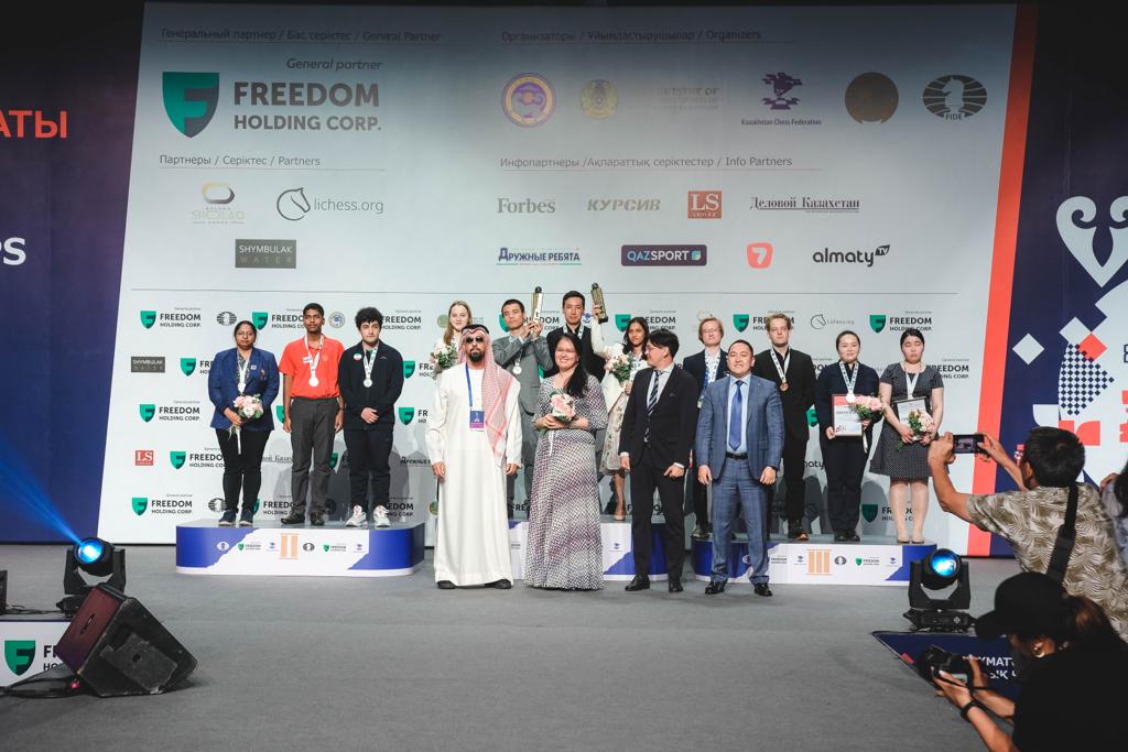 В торжественной церемонии награждения приняли участие заместитель акима Алматы Асем Нусупова, а также президент Азиатской федерации шахмат Шейх Султан бин Халифа Аль Нахайян.