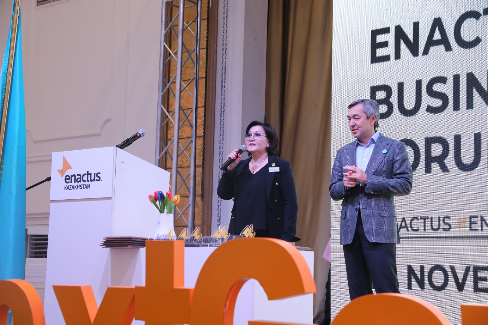 Также на открытии выступила Альбина Ержанова, президент и CEO Enactus Kazakhstan. Она поздравила студентов с 15-м по счету форумом и запуском молодёжных бизнес-проектов. Она рассказала, что в конце каждого учебного года лучшие команды презентуют свои социальные, предпринимательские бизнес-проекты на национальном кубке Enactus Kazakhstan.