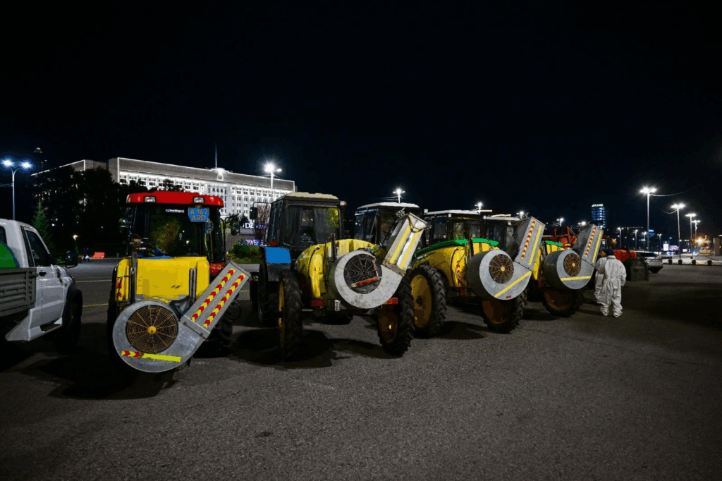 Как сообщалось ранее, работы осуществляются в ночное время: отсутствие прямого солнечного света способствует более длительному действию средств на вредителей за счёт замедленного испарения.