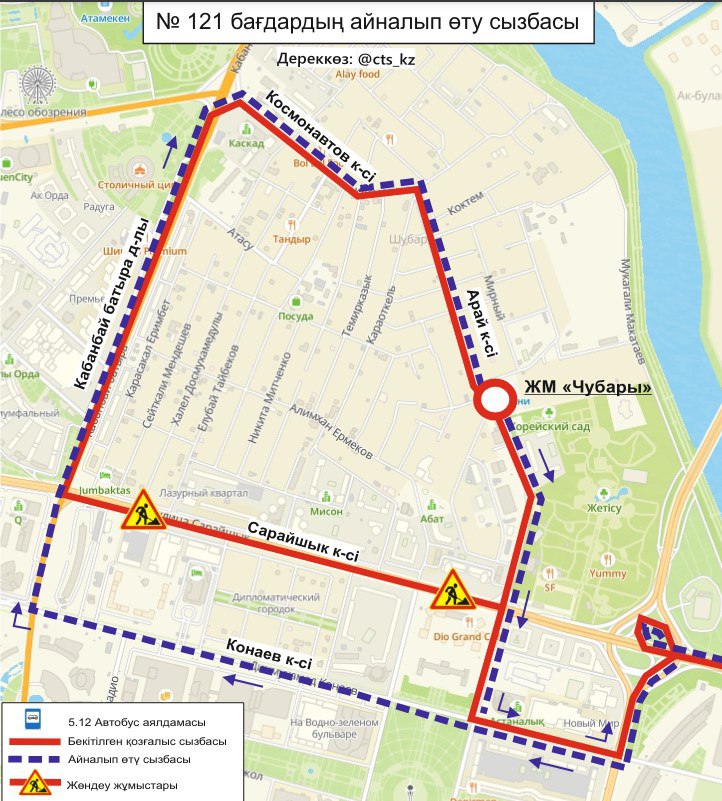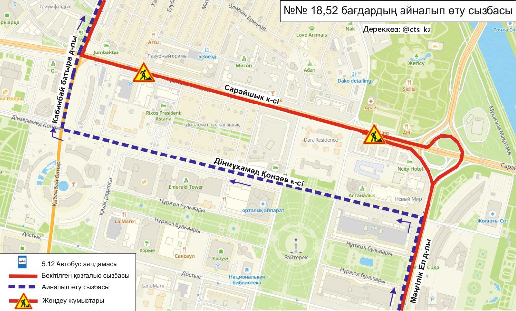 В ТОО "City Transportation Systems" рассказали, что до завершения ремонтных работ, временно изменены схемы движения маршрутов №№ 18, 52, 54, 57, 121. Жителей попросили заранее планировать свой маршрут.