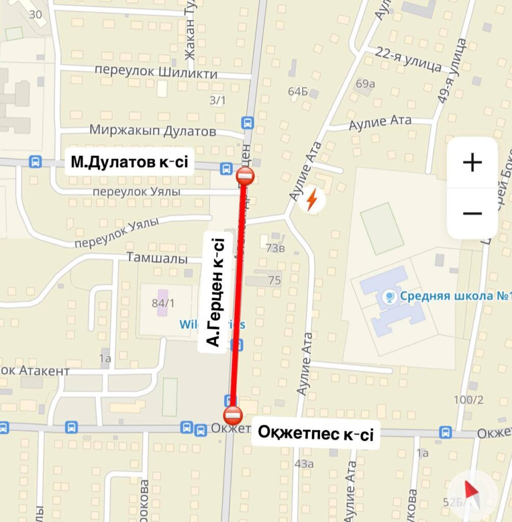 Для проведения среднего ремонта дорог закроют участок улицы от Дулатова до Окжетпес и перекрёсток Герцена – Дулатова.