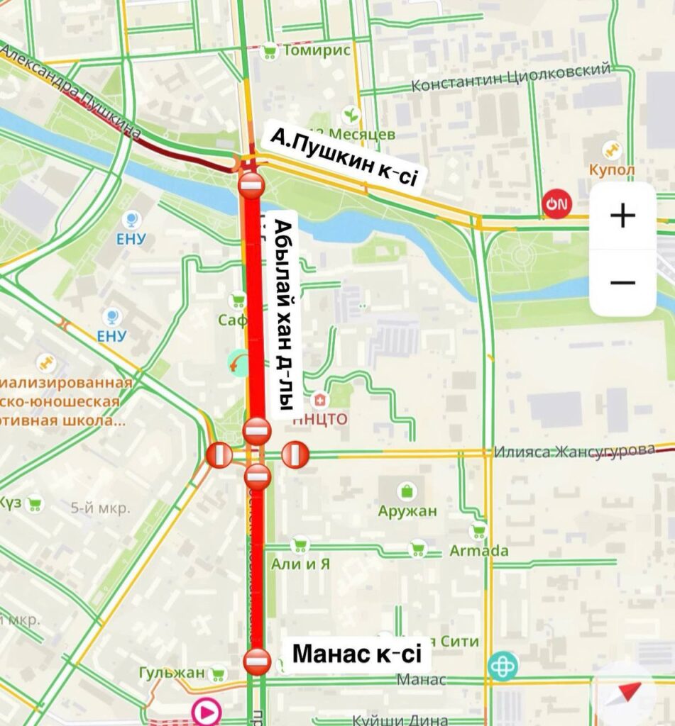 В Астане полностью перекроют перекрёсток Абылай хана и Жансугурова