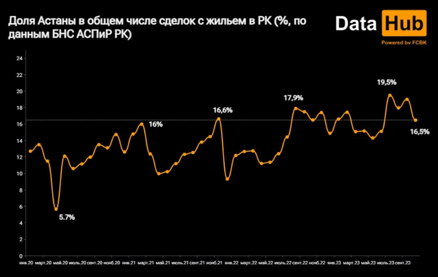 Число сделок с жилой недвижимостью в Астане резко упало. Показатель за октябрь составил 5438 единиц, что на 19 % ниже, чем в сентябре, следует из данных Бюро национальной статистики. Нынешний уровень – минимальный с июня и ниже цифр годичной давности, сообщает informburo.kz со ссылкой на Первое кредитное бюро.