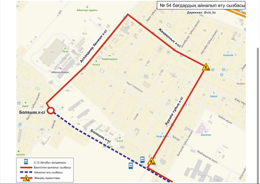 Маршрут №49 будет следовать по улице Кайнар, затем повернёт на проспект Тлендиева и продолжит движение по улицам Бабатайулы и Ардагерлер.