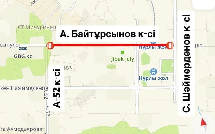 С 24 апреля по 2 мая текущего года будет частично перекрыто движение на отрезке от улицы А52 до улицы С. Шаймерденова.