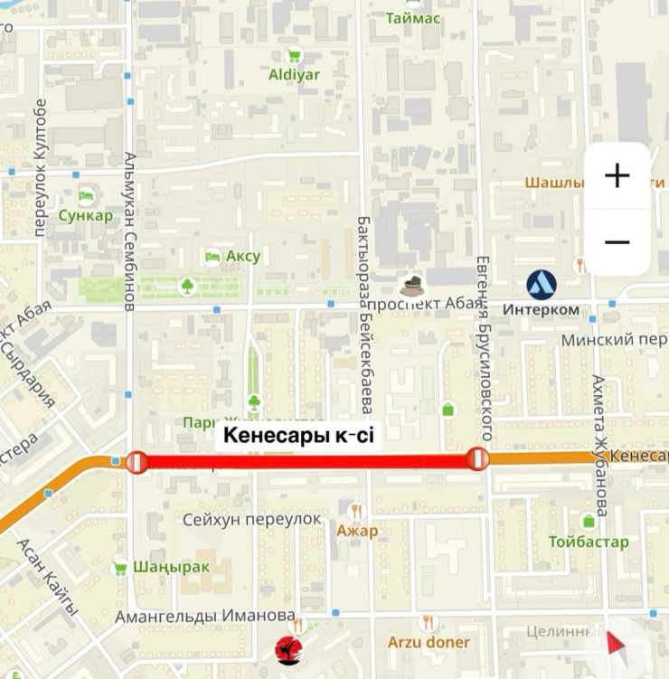 По данным управления транспорта и развития дорожно-транспортной инфраструктуры, 27 по 29 мая будет полностью закрыт участок улицы Кенесары между улицами Сембинова и Брусиловского, пишет Caravan.kz.