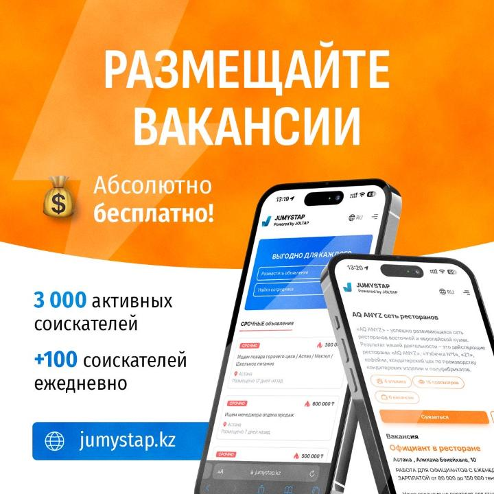 Главной задачей платформы JUMYSTAP.kz является оперативное решение проблем кадрового голода и безработицы в столице. Работодатели могут воспользоваться платформой для удобной публикации собственных объявлений. Здесь можно детально описать требования к кандидатам и делиться этими вакансиями с широким пулом соискателей. Представители бизнеса и физические лица могут найти не только сотрудника на постоянное рабочее место, но и исполнителей для выполнения заказов на объем. Площадка является единственным сервисом, включающим в себя более 1000 цифровых специалистов.