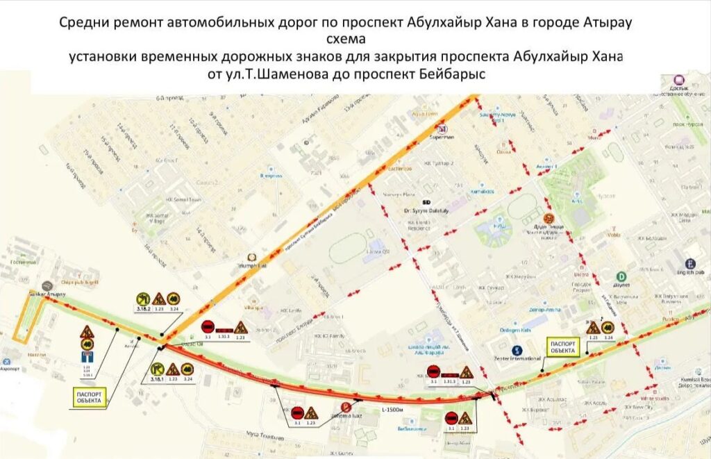 «С 8 сентября в связи с проведением средних ремонтных работ на проспекте Абылхайыр хана участок между улицей Т. Шамелова и проспектом Султана Бейбарса: одна сторона будет открыта, а встречное направление временно закрыто. Приносим извинения за возможные неудобства», — сообщили в акимате Атырау.