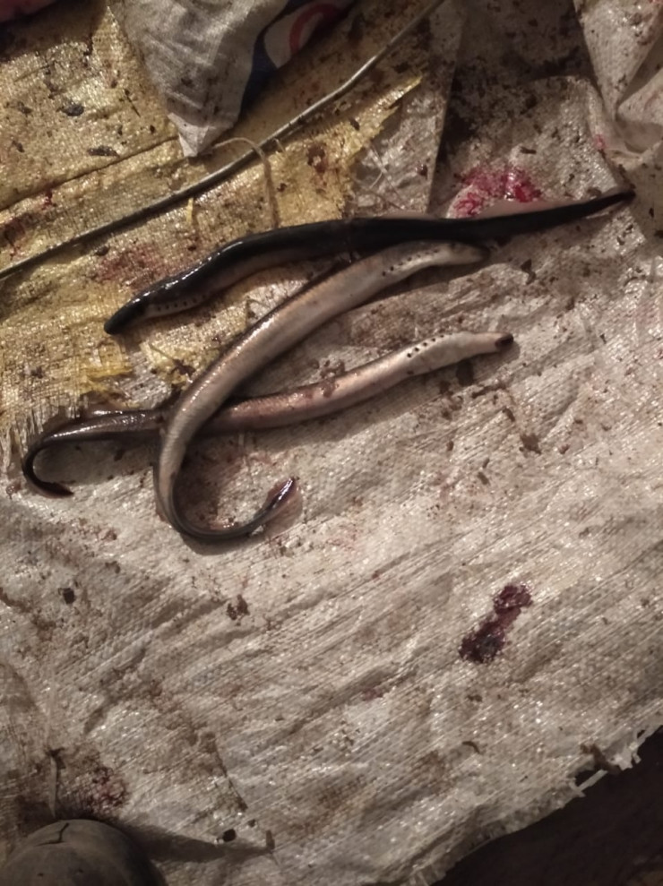 — Один из нас нашел в реке старый сапог, решил вытащить из водоема этот хлам, а оттуда повалились эти существа. Сначала мы подумали, что это змеи, но, присмотревшись, поняли, что это рыба, похожая на угря. Несколько штук все-таки уползли. Таких рыб мы никогда не видели в нашей реке. Прогуглив, узнали, что это минога. Википедия выдала много информации о ней. В частности, о том, что эта рыба обитает в основном в России, Финляндии, Латвии, Швеции, Эстонии, — поделился любитель-рыболов со стажем Дмитрий Соколинский.