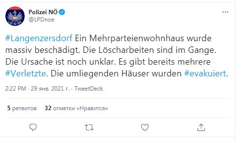 Несколько этажей здания обрушились, об этом сообщает ТАСС со ссылкой на Австрийское агентство печати.