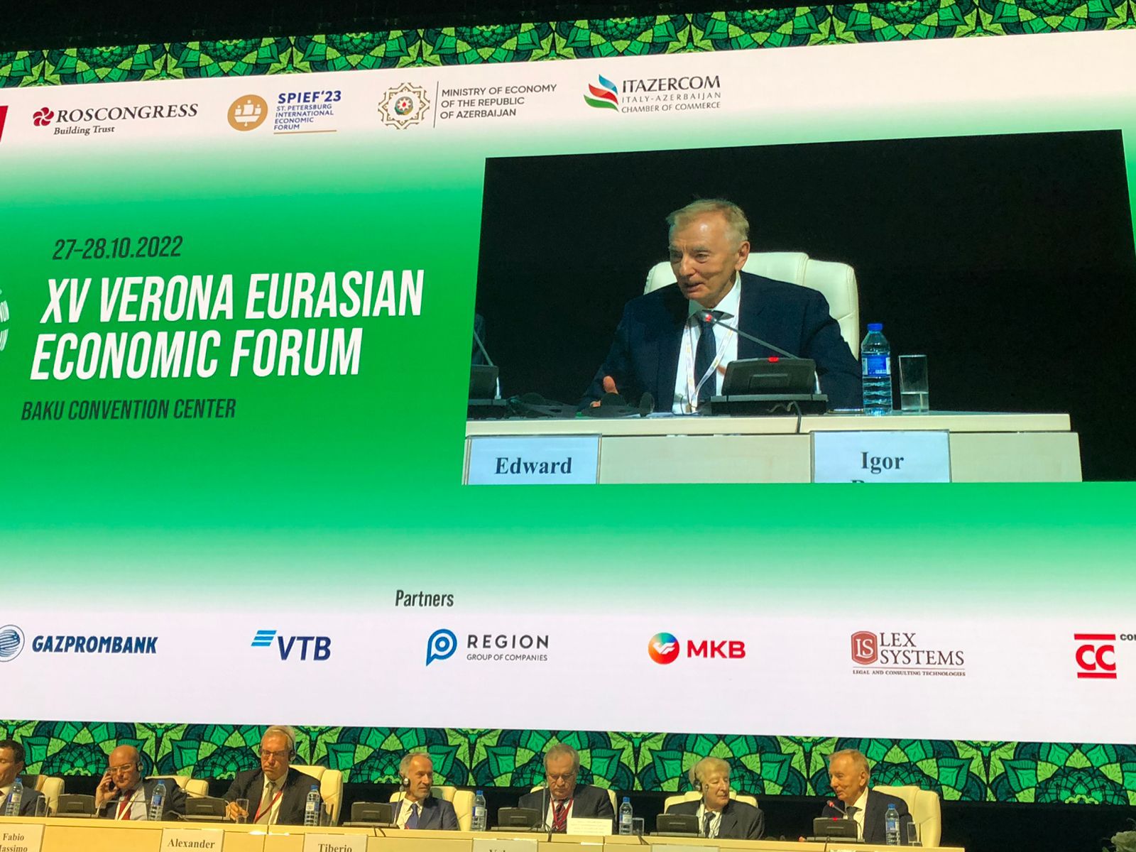 Алексей Оверчук отметил: «Проведение Веронского Евразийского форума в Баку – это сигнал, говорящий о переходе от глобальной осевой модели развития "Восток-Запад" к модели "Север-Юг"».