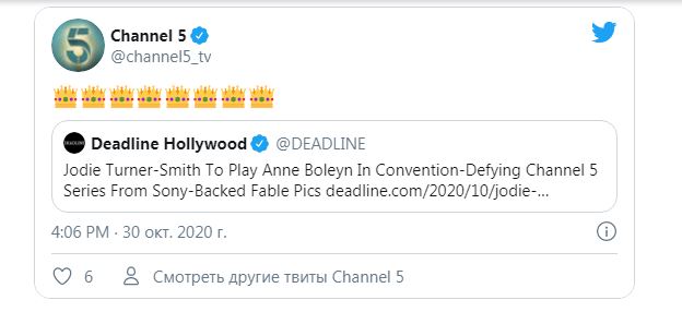 Телеканал Channel 5 поделился новостью в официальном Twitter, сопроводив её изображением короны.