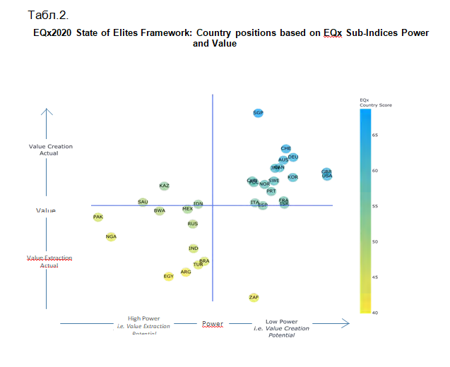 EQx2020 State of Elites Framework: Country positions based on EQx Sub-Indices Power and Value