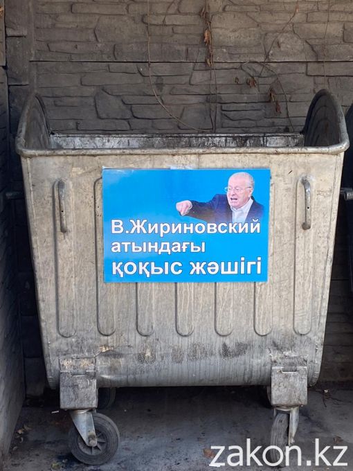 Тем не менее, Жириновский в недавнем интервью сказал, что скучает по Алматы и хотел бы, чтобы его имя увековечили в городе, в котором он родился. Активисты молодежного объединения "Намыс" исполнили его желание и присвоили имя Жириновского… мусорному баку во дворе дома по адресу Масанчи 79.